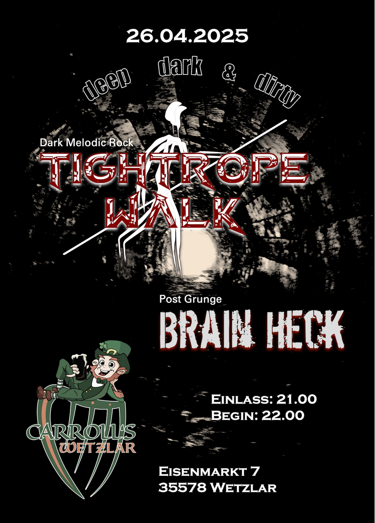 . Es wird deep, dark & dirty und wir freuen schon sehr darauf, gemeinsam mit Brain Heck und euch die Bühne zu rocken! Einlass ist ab 21:00 Uhr, Beginn 22:00 Uhr, Eintritt: 2-3 € + Hut!